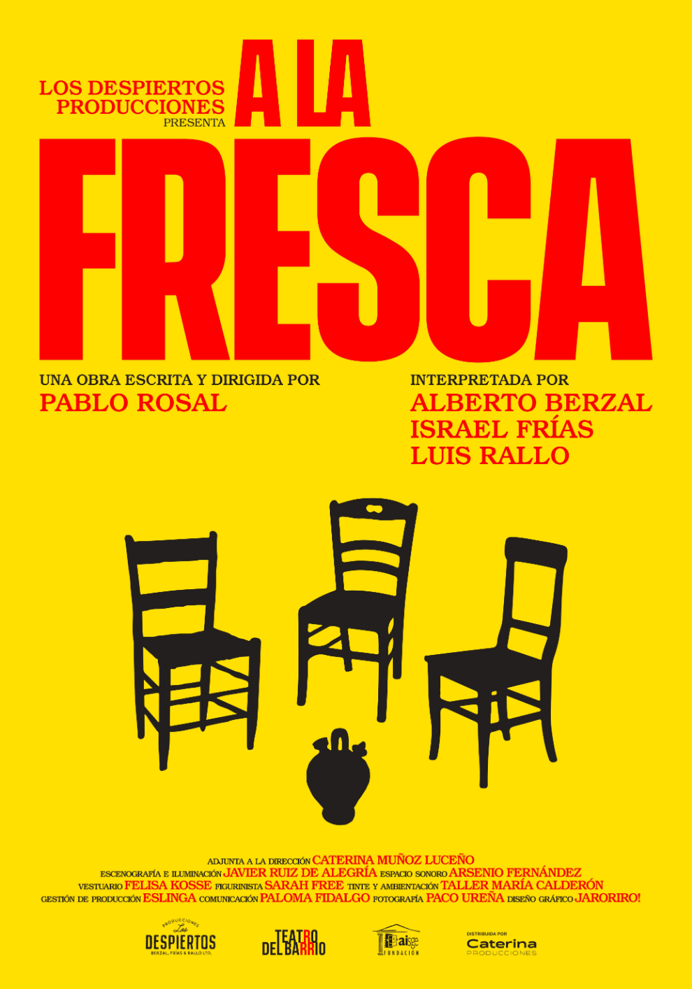 En la misma senda de encontrar nuevas dramaturgias en español, nuestra segunda producción en esta nueva etapa es A la fresca, obra original escrita y dirigida por Pablo Rosal, actualmente en repertorio y gira al igual que Los Despiertos.